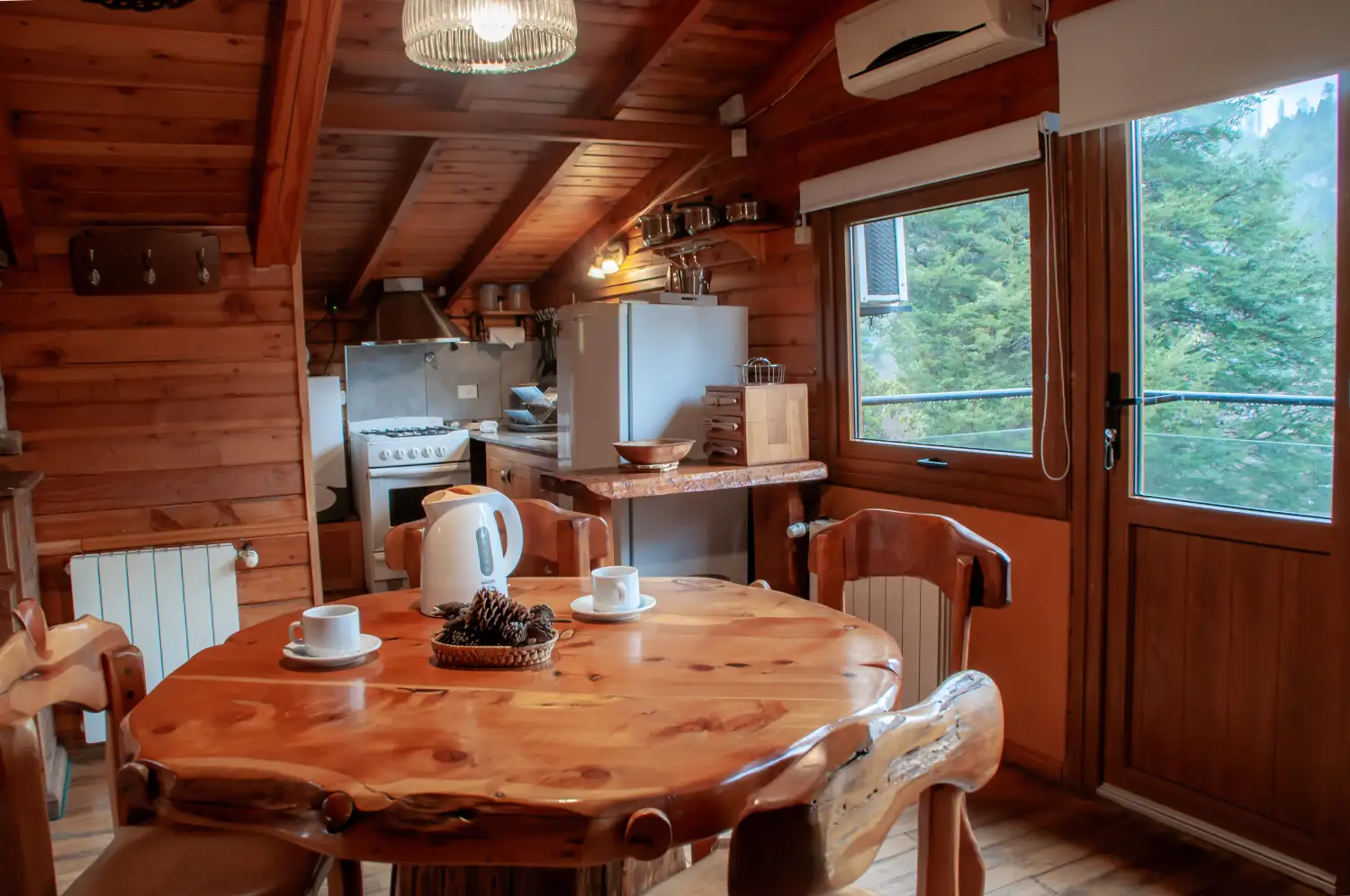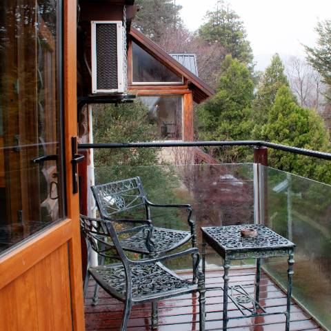 Upstairs: fully equipped kitchen (stove with oven, toaster, coffee maker, microwave), living-dining room with balcony overlooking the lake (single bed), TV, telephone, stereo and air conditioning.