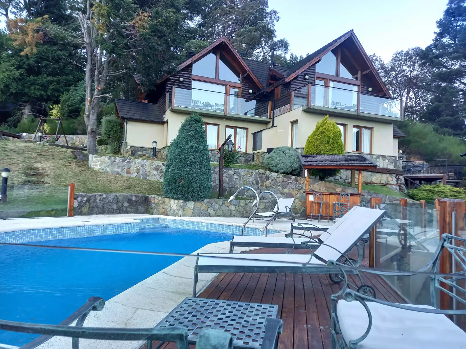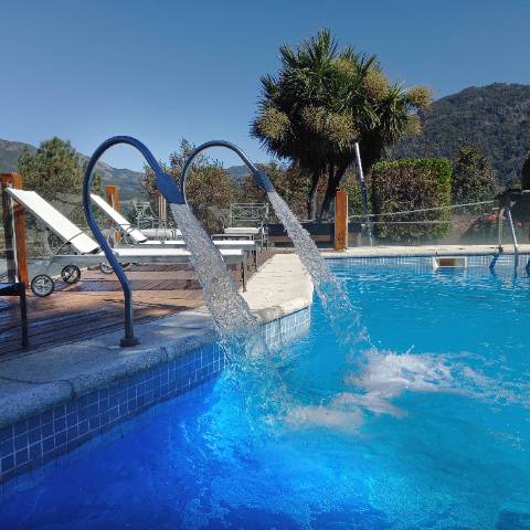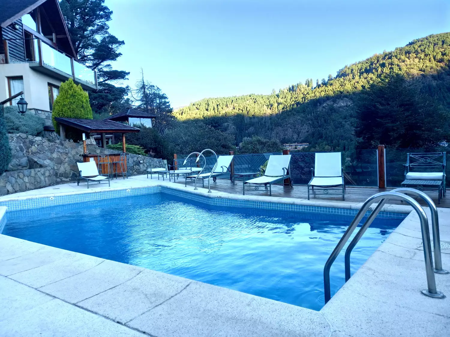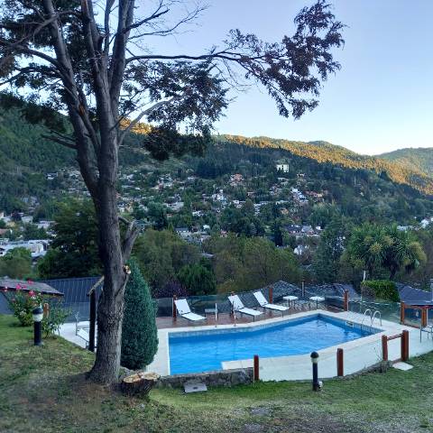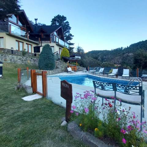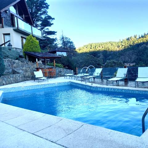 Piscina climatizada (habilitada desde diciembre a marzo) con una excelente vista panorámica