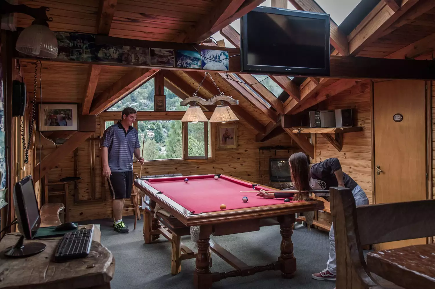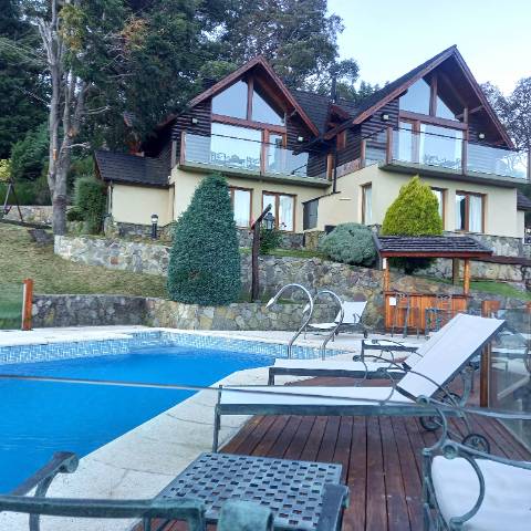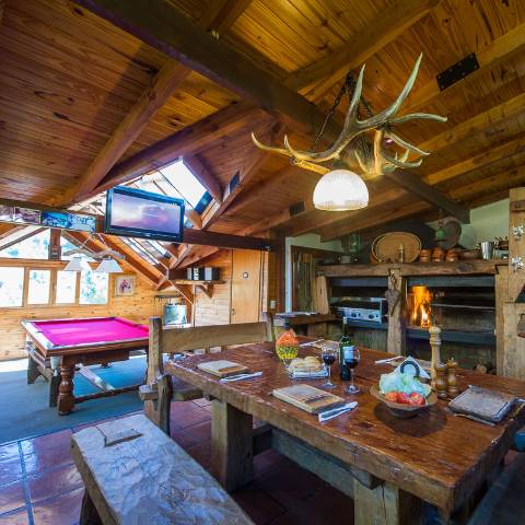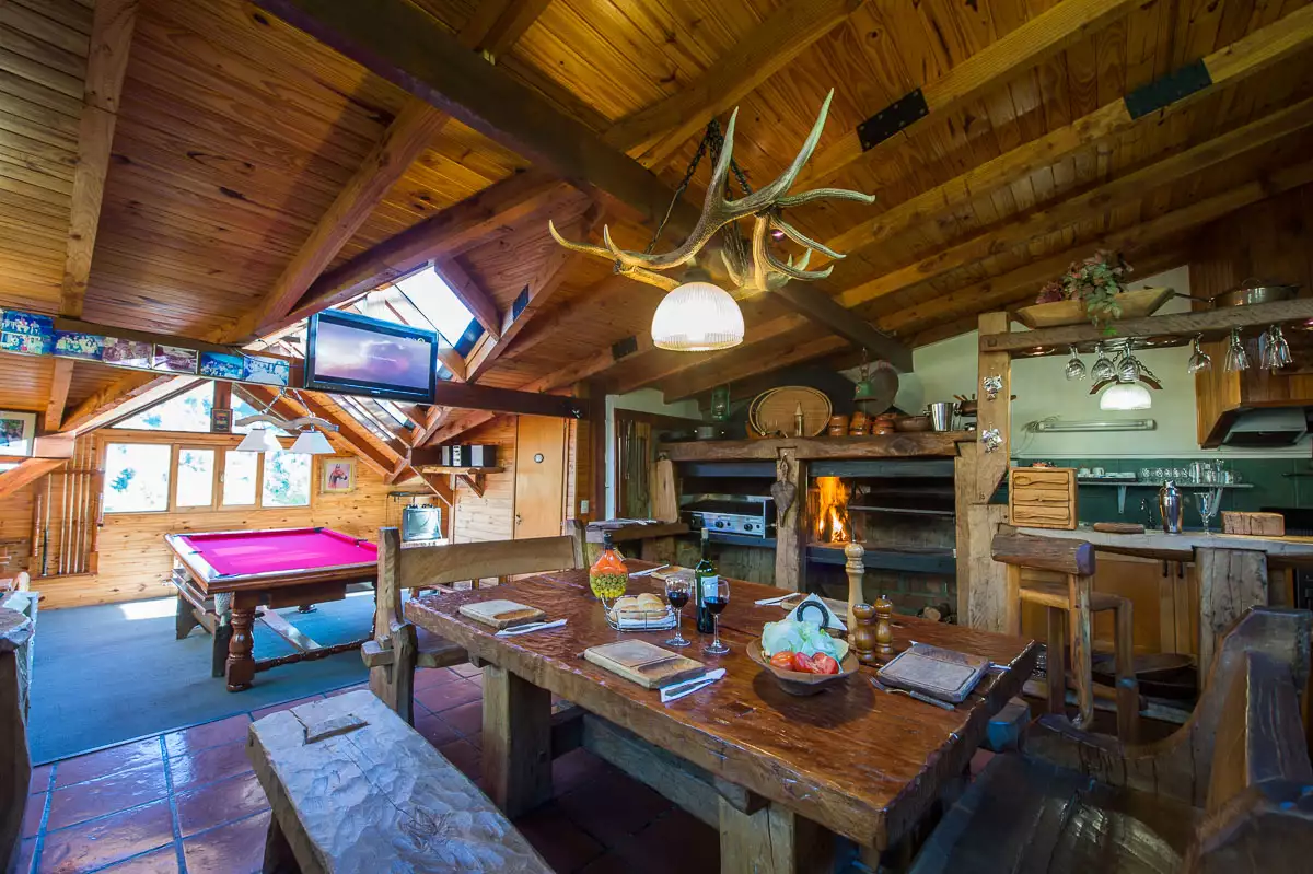 Quincho parrilla a gas y a leña., TV por cable, equipo de música, mesa de pool, con excelente vista al lago y al río.